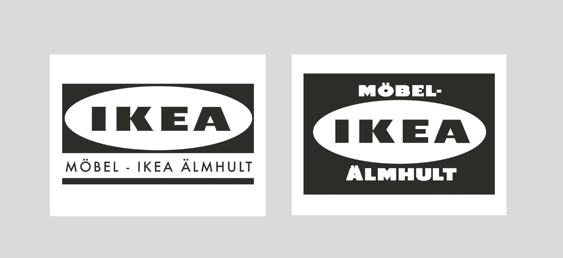 Gillis Nilsson, a professional production designer, simplified and standardized the logo. In 1962, the accent above the E was removed, and the font was redesigned for better recognition. The diagonal shape became horizontal, and IKEA was placed inside an oval with variations of 'Möbel' and 'Älmhult'. The logo became black and white, framed by a rectangle.