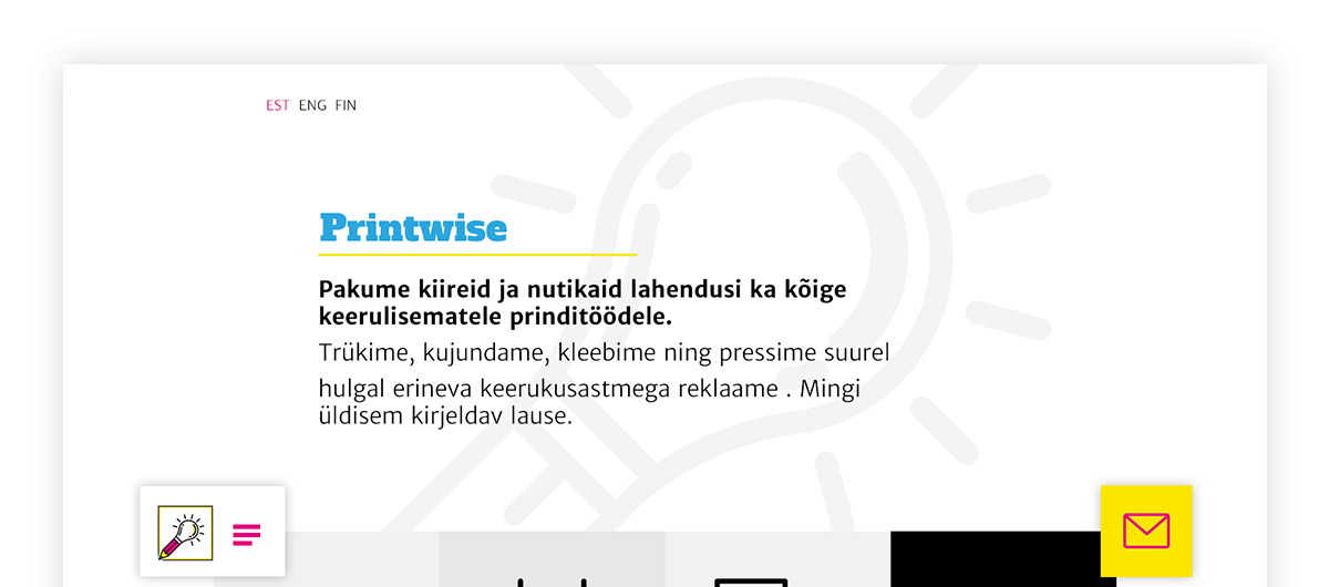 We also did a mini-web for a local print shop in Telliskivi campus Printwise — a minimal site with a funky CMYK colour themed portfolio site we launched in mid summer.